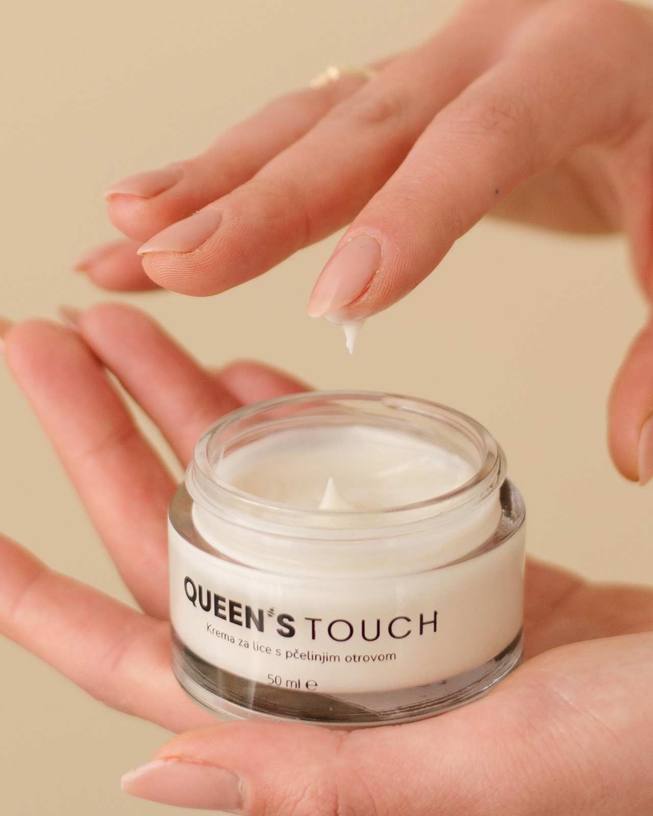 Queen’s Touch namijenjen je ženama 35+ koje traže ozbiljnu, učinkovitu i sigurnu anti-age njegu. Pogodno za sve tipove kože, osim izrazito osjetljive i alergične na pčelinje proizvode.